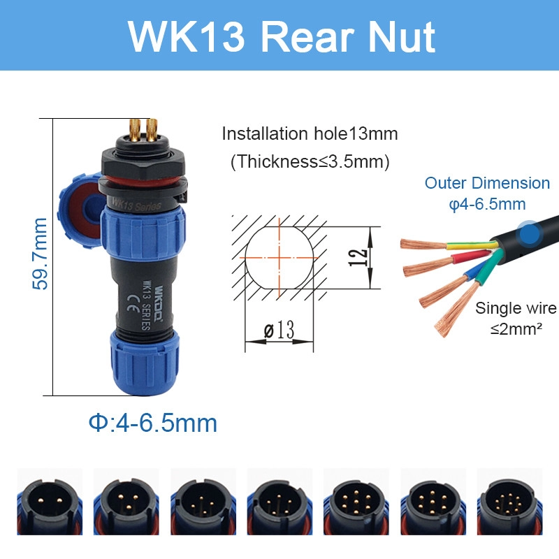 WKDQ Pim Panel Montaj Deliği Su Geçirmez Konektör IP68 Derecelendirmeli Sualtı WK13 Yerleştirme ile Taşınabilir Elektrikli aşağıdaki temel özelliklere ve özelliklere sahiptir: