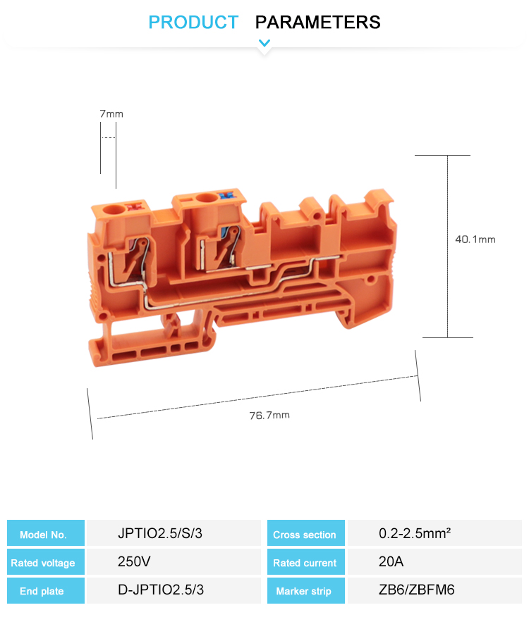Alev geciktirici naylon PA66, pirinç iletken ve paslanmaz çelik sıkıştırma yay, sert ortam altında terminal blokun yüksek sıcaklık direnci ve korozyon direncini sağlamak için kullanılır. Ön konnektör tasarımı ile birleştiğinde kompakt yapı, küçük alanlarda kurulum verimliliğini önemli ölçüde optimize eder.