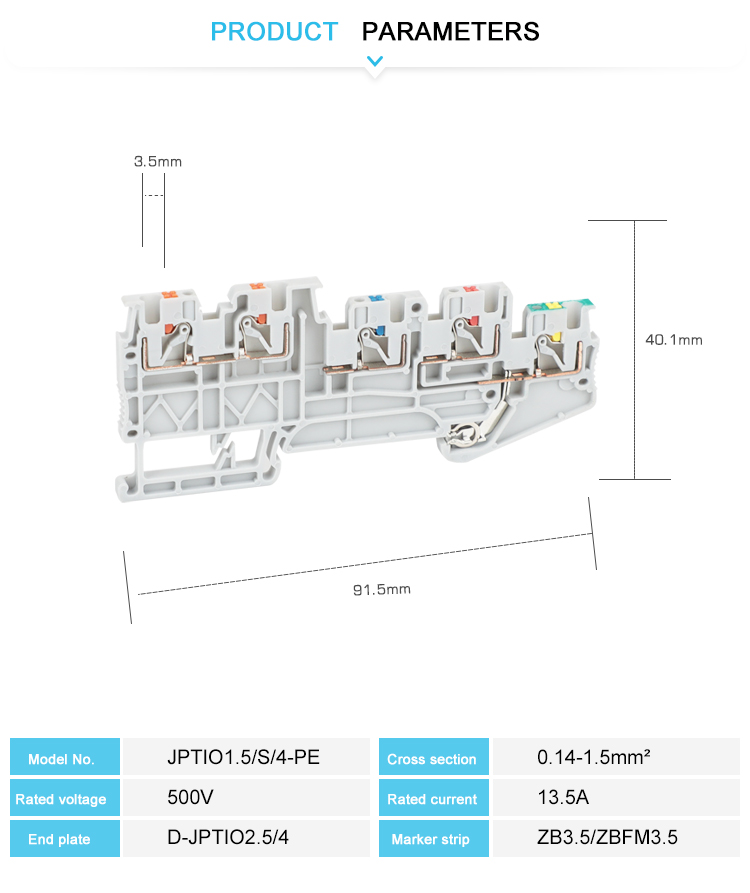 Yüksek Kaliteli Gri JPTTB 2.5-PV İtmeli Üniversal Terminal Bloğu Ce Sertifikalı